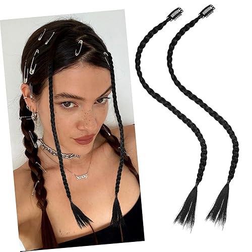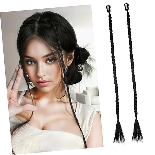 OUNONA 2Pcs Synthetic Braided Ponytail Extensions Clips Long Hair Extensions for Women for Braids Dreads and Everyday Use