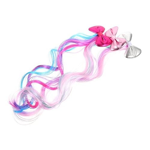 3pcs Boys and Girls Hair Extensions Bow Clip Hair for Girls Curly Wigs for Birthday Festivals Easy