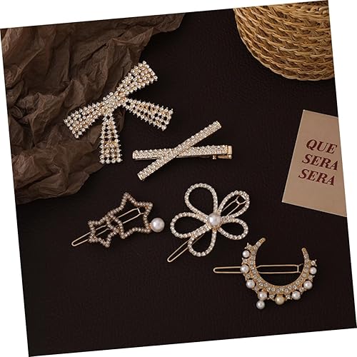 5pcs Vintage Pearl Rhinestone Hair Clips for Women and Elegant Charming Styling Accessories All-match Decorative Bang Hairpins Secure Hold for Various Hairstyles