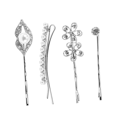 4pcs Women’s Small Elegant Pearl Rhinestone Hair Clips Simple Diamond Hairpins for Beach Styling and Party Silver Tone Accessories for Prom and Daily Wear