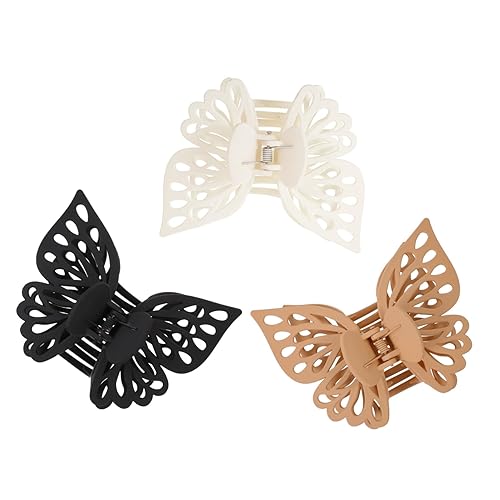 Baluue 3pcs Large Butterfly Hair Claw Clips for Women Hair Clamps in Black Khaki Strong Hold Styling Accessories