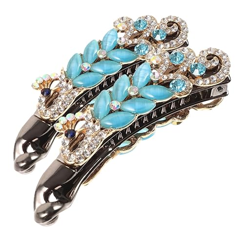 Baluue 2pcs Elegant Blue Rhinestone Banana Clips for Thin Hair Stylish Updo Hair Accessories with Firm Hold Peacock Alloy Design for Women S Versatile Ponytail and Bun Styling