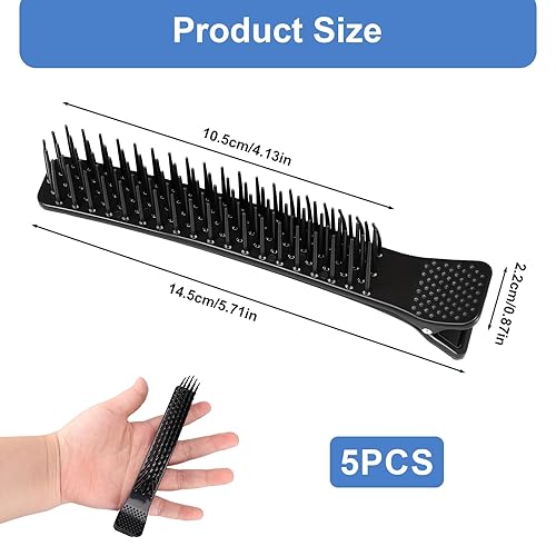 5 Pcs Grip Clips for Hair Sectioning, Sectioning Clips with Comb Design, Professional Stylist Nonslip Hair Tools for Cutting Coloring Styling, Black Salon Accessories for Women
