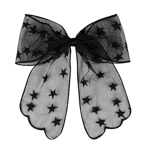 PLwelth Halloween Bow Hair Clips Black Star Hair Bow Barrettes for Girls Women Gothic Mesh Tulle Hair Pins Lace Hair Clip for Thin Thick Hair Styling Cosplay Costume Party Hair Accessories