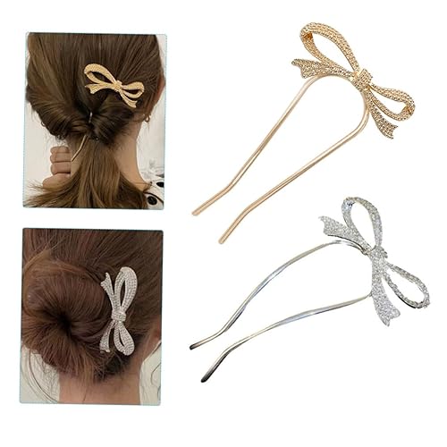 4pcs Metal Bowknot Hair Pins Lightweight Hair Chopsticks for Women Wedding Bridal Accessories Elegant Gold and Silver Clips for Quick Bun Styling