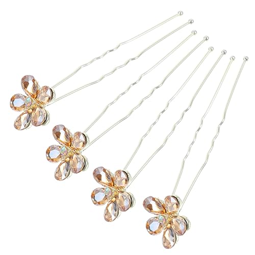 Baluue 4 pcs U-shaped Rhinestone Hairpins Floral Bridal Hair Pins Wedding Hair Accessories for Secure Bun Styling and Comfortable Wear