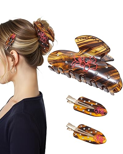 Cellulose Acetate Hair Clips for Women, Rectangle Tortoise Shell Celluloid Strong Hold Claw Clips for Thin Thick Hair, Barrette Jaw Clamp Styling Accessories for Ladies Mother (2 Pack)