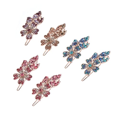 6pcs Rhinestone Flower Hairpins for Women Elegant Crystal Hair Clips Barrette Delicate Bobby Pins Styling Accessories for Adult Wedding and Daily Wear