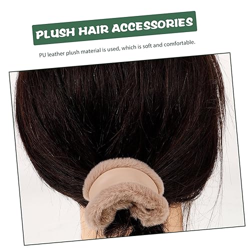 2Pcs Vintage PU Leather Fluffy Hair Ties Elastic No Damage Ponytail Holders for Thick Hair Soft Elastics for Braids and Everyday Styling Portable Accessories for Women