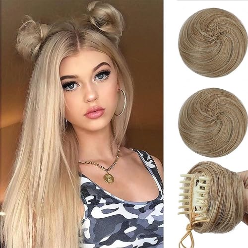 Hair Buns, 2PCS Space Buns Mini Claw Clip in Hair Bun Extensions Messy Cat Ears Wig Accessory Synthetic Donut Updo Hairpieces for Girls Hair Buns Hair Piece(Black)