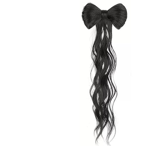 Bowknot Synthetic Hairpiece Ponytail Extension with Hair Clip 14 Inch Wave Fake Ponytail Wigs for Women Christmas and wedding Daily life hair styling Accessories (Dark brown B)