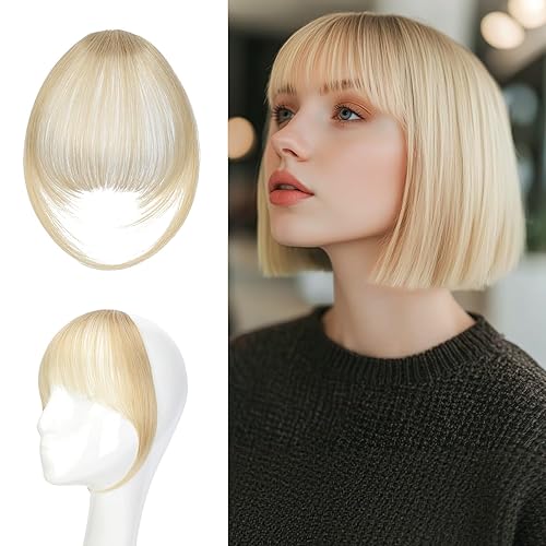 Clip in Bangs,Bangs Hair Clip for Women Wispy Bangs Fringe with Temples Hairpieces Fake Bangs Hair Extensions for Daily Wear Light Blonde Mix Bleach Blonde