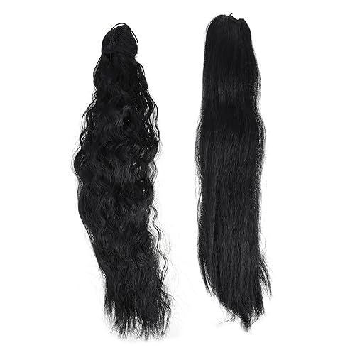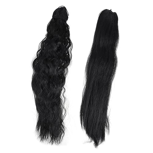 2pcs Long Black Curly Hair Extension Wrap Ponytail Wig Hair Lightweight Comfortable for Women Daily Party Cosplay