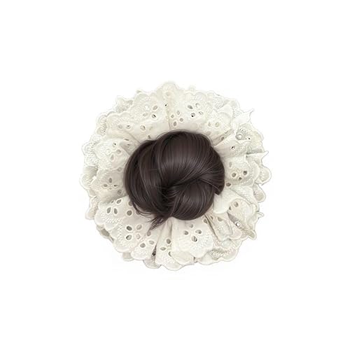 Hair Buns with Scrunchies for Women, Fake Extension Hair Pony Tail Bun, Synthetic Elastic Ponytail Holders, Lace Headband Flower Bud Hair Accessories