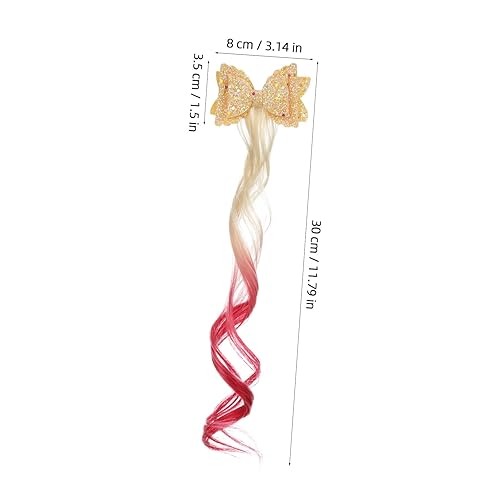 VICASKY 3pcs Hair Extension Clips with Glitter Bow Curly Colored Hair Accessories for Easy Clip In Wigs Lightweight Comfortable for Parties Birthdays and Dress Up