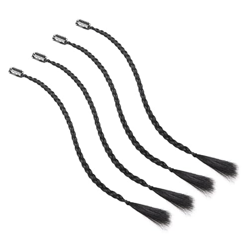 4Pcs Clip In Hair Extensions Braided Bangs Side Braids Long Synthetic Ponytail for Women Easy to Wear Stylish Hairpiece Black
