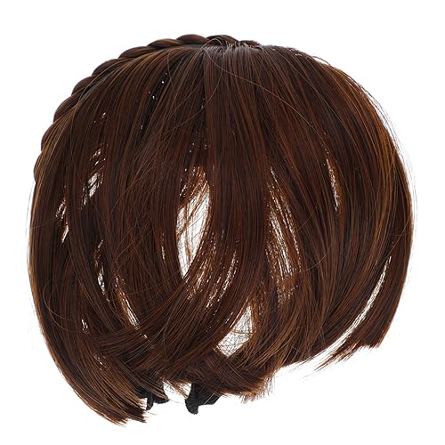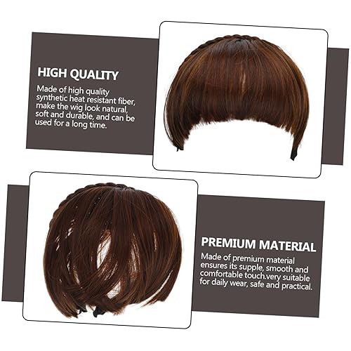 FRCOLOR Lifelike French Style Fake Front Bangs Hair Extensions for Women One Lightweight Ventilated Design Easy to Wear for Daily Party and Cosplay Use Natural Light Brown