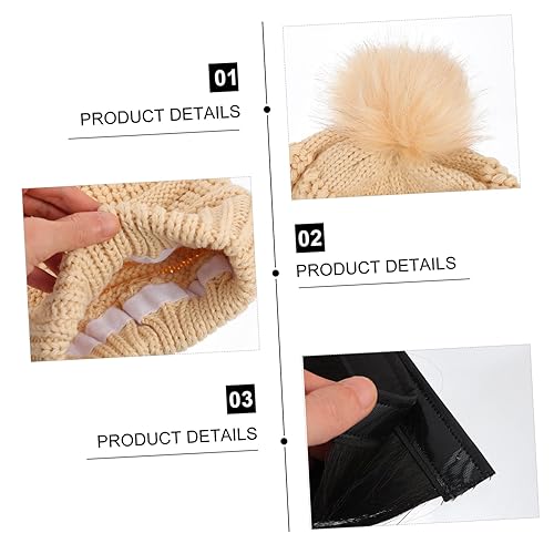 Detachable Long Curly Wavy Hair Wig with Beige Knit Hat for Women Natural Texture Hair Extension Hat Stylish Headdress for Everyday Wear and Special Occasions