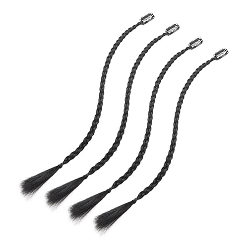 4Pcs Black Clip In Braid Hair Extensions Long Front Side Bangs Braided Hair Piece Synthetic Wig for Women Party Cosplay Halloween Festival
