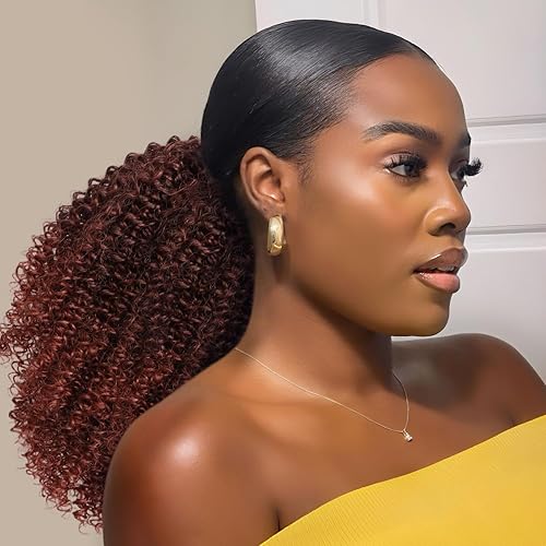 Ponytail Extension - 10 Inch Afro Kinky Curly Drawstring Ponytail for Black Women Short Pony Tails Hair Extensions (Natural Black(2#), 10 Inch)
