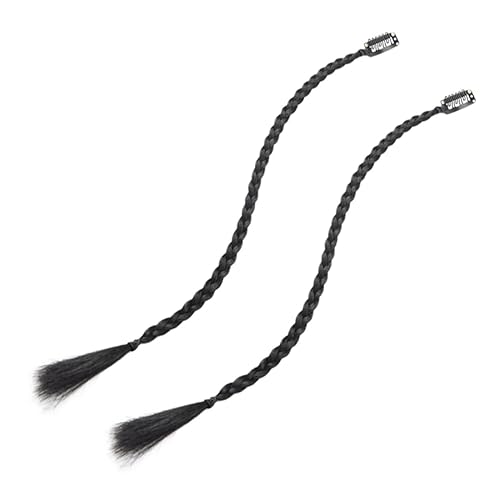 FRCOLOR 2Pcs Clip In Braided Hair Extensions Synthetic Braid Wig Side Bangs Long Braided Ponytail for Women Ladies Stylish Hair Styling
