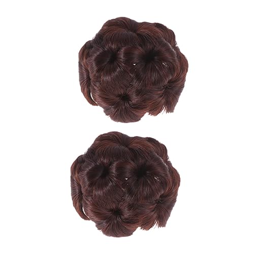 Natural Volume Curly Hair Bun Extension Deep Brown Tousled Messy Chignon Hairpiece for Women High Temperature Silk Synthetic Ponytail Hair Accessory Adds Fullness for Daily Wedding