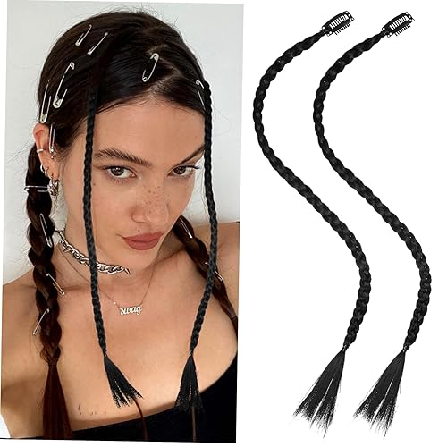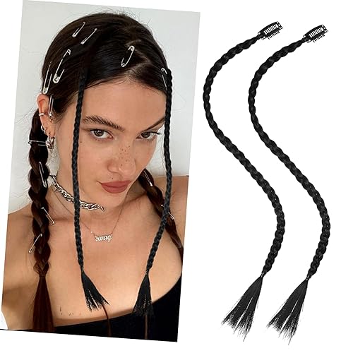 2Pcs Clip In Braided Hair Extensions Synthetic Side Bangs Long Braided Hair for Women Stylish Natural Look Easy to Wear for Parties and Clubs