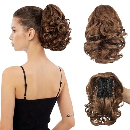 Ponytail Extension, Clip on Ponytails for Women, 9" Claw Clip in Short Curly Wavy Pony Hair Extension for Women - Brown