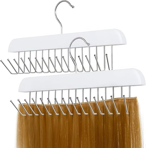 Black Hair Extension Holder for Styling, Washing, Drying. Braiding Hair Rack for Weft, Clip in, Tape in and Halo Extensions. 2 Packs Hair Extension Hanger for Closet.
