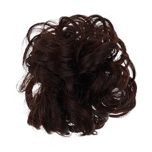 Natural Volume Messy Ponytail Hairpiece with Elastic Band Dark Brown Hair Bun Extension for Womens Updo Curly Tousled Chignon Hair Accessory for Parties and Daily Use