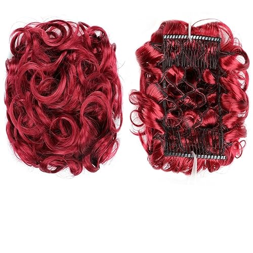 EARSHOT Hair Buns Hair Piece Synthetic Messy Bun Wig Hair Pieces Wavy Curly Bun Ponytail Hair Extensions Bun Hair Comb Women Bun Wig Hair Accessories For Girls (Color : Burg)