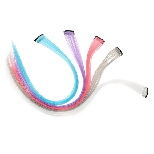 15pcs Hair Extensions Clip-for Women Straight Synthetic in Mint Gray and White Easy to Use for Fashionable Looks