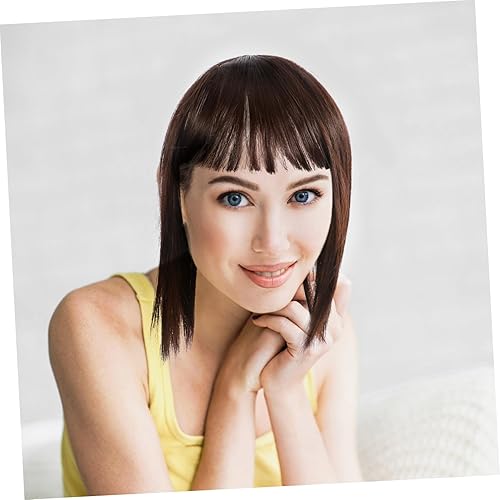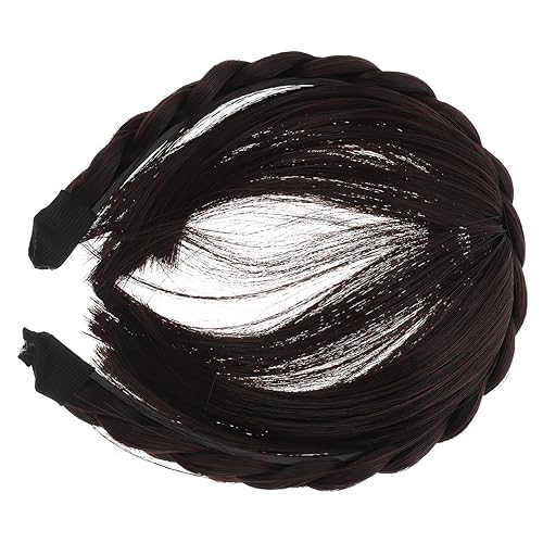 Synthetic Wigs Headband Bangs Dark Brown Forehead Hair Extensions for Women Fluffy Front Fringe Hairpiece for Daily Use and Special Occasions