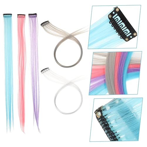 10PCS Clip-In Colorful Hair Extensions Straight Human Hair Pieces for Women Easy to Use Accessories for Parties and Everyday Wear