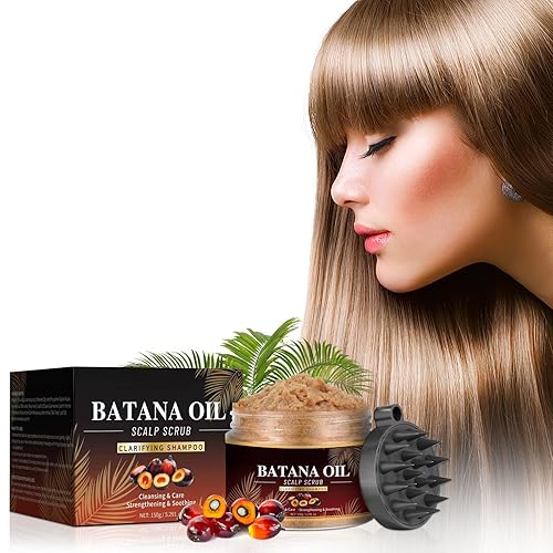 Scalp Scrub for Thinning Hair, 2-in-1 Shampoo Micro-Exfoliating Scalp Exfoliator, Batana Oil Scalp Scrub with Scalp Massager Promotes Hair Growth, Scalp Treatment, Itchy Scalp Relief, 5.29 oz