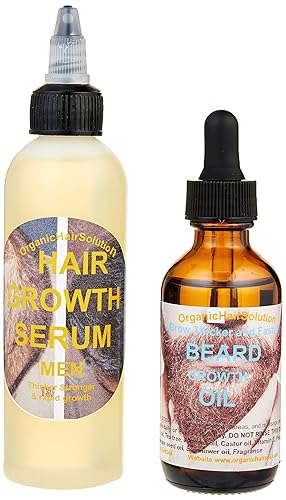 Organic Hair Solution-MEN HAIR GROWTH SERUM AND BEARD GROWTH SET-For Stronger, Thicker Longer Hair-Scalp & Hair Strengthening Oil with Biotin,Castor, Jojoba seed, Argan & Vitamin E- for All Hair Types