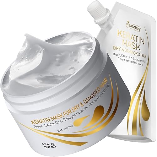 Keratin Hair Mask for Thin and Fragile Hair, Deep Restructuring Treatment for Color Treated Hair