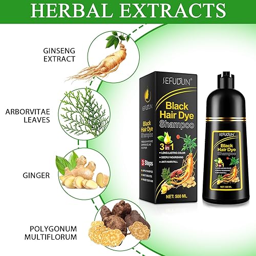 Black Hair Dye Shampoo 3 in 1, Shampoo for Color Treated Hair 100% Gray Coverage for Women & Men, Instant Champu Para Canas 16.9 fl.oz