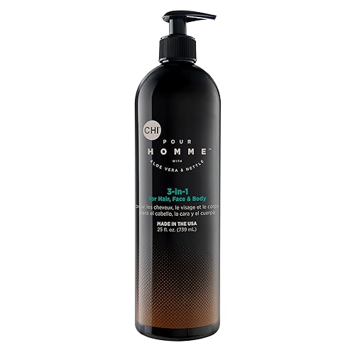 CHI Pour Homme 3-in-1 Cleansing & Moisturizing Hair, Face & Body Wash for Men, Made With Aloe Vera & Nettle, Fresh, Woody Scent, Sulfate-Free, 11.5 oz