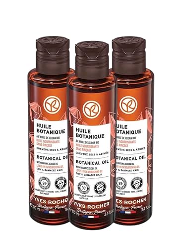 Yves Rocher Botanical Oil Restorative Jojoba Oil for Dry Damaged Hair Deep Repair & Nourishment Leave-In Treatment - 100 ml./3.3 fl.oz. Set of 3
