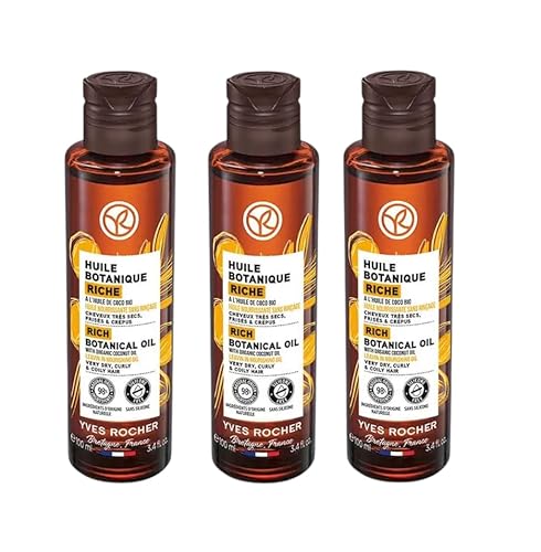 Yves Rocher Restorative Coconut Oil for Dry & Damaged Hair Deep Repair Leave-In Treatment 100 ml./3.3 fl.oz. Set of 3
