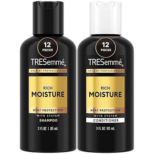 TRESemmé Travel Shampoo and Conditioner Set, Rich Moisture 24-Pack (12 Sets), Detangler, Frizz Control + Heat Protection, 3 Oz Ea