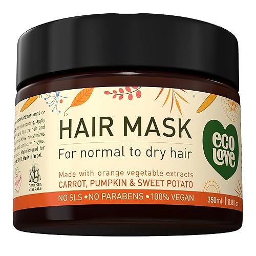 ecoLove Hair Mask for Dry, Damaged, and Curly Hair - Deep Conditioning Treatment with Carrot and Pumpkin Extract, SLS & Paraben-Free, Vegan and Cruelty-Free - 11.8 oz