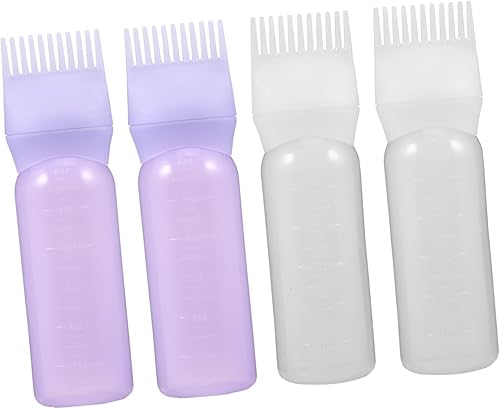 4pcs Hair Dye Applicator Bottle with Graduated Scale Color Distribution Root Comb Bottles for Hair Coloring and Oiling for Home and Salon Use