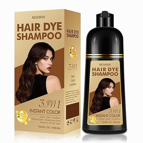 Chestnut Brown 3-in-1 Hair Dye Shampoo with Argan Oil, 500ML, Instant Hair Color in Minutes, Long-Lasting Salon-Quality Dye, Easy Use for Men & Women, Champú Para Canas Mujer