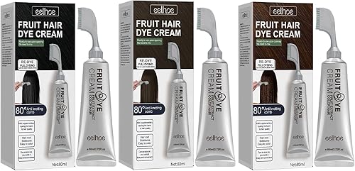 Hair Dye Cream 80ml Natural Plant Extract - Gentle Long-Lasting No Damage to The Scalp 3 Models Percent Gray Coverage,Brown,3pcs