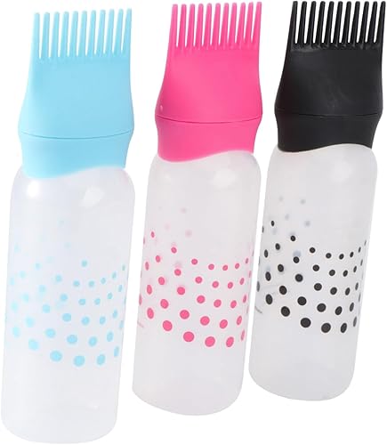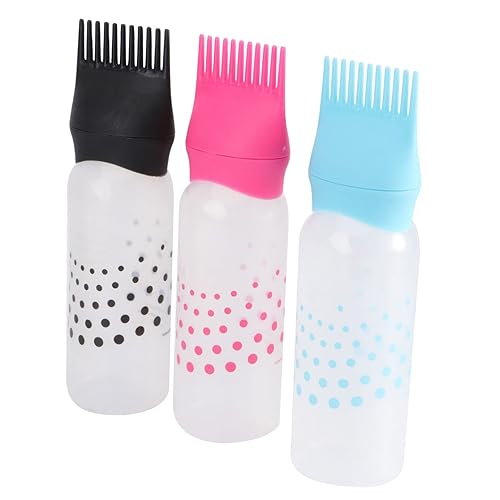 OUNONA 3Pcs Colorful Hair Dye Bottles with Comb Applicator Smooth Surface Hairdressing Tools for Even Color Distribution Salon Black Rosy and Blue