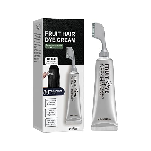 Fruit Hair Dye Cream with Anti-Knotting Comb, Black Hair Color, Plant-Based Formula, 80ml, Ready to Use