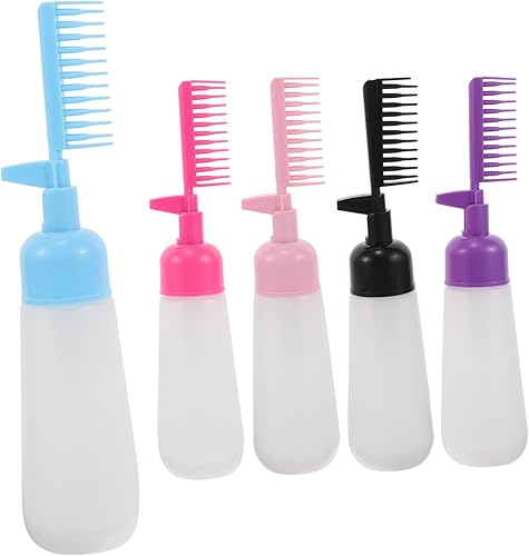 FRCOLOR 5pcs Portable Hair Dye Applicator Comb Bottle Set Large Capacity Oil Dispenser Root Comb for Hair Dyeing and Oiling