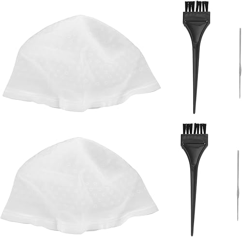 2 Sets Professional Reusable Highlight Cap of Silicone Hair Dyeing Caps with Brushes for Hair Coloring and Highlighting for Women and Total